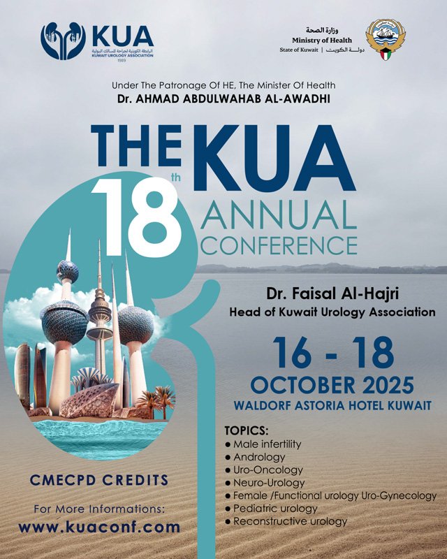 The 18th Annual Conference of the Kuwait Urology Association is a landmark platform for practicing urologists, urologists-in-training and allied health professionals involved with urology, to network with fellow researchers, clinicians and other health care practitioners, distinguished local and international faculty, many of whom are involved in cutting-edge research in their fields.